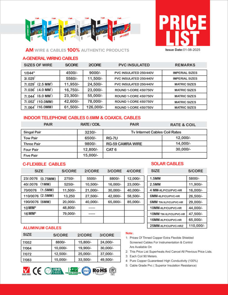 AM Cables manufactures general telephone cables up to 20 pairs which are used in houses, offices and shopping malls.